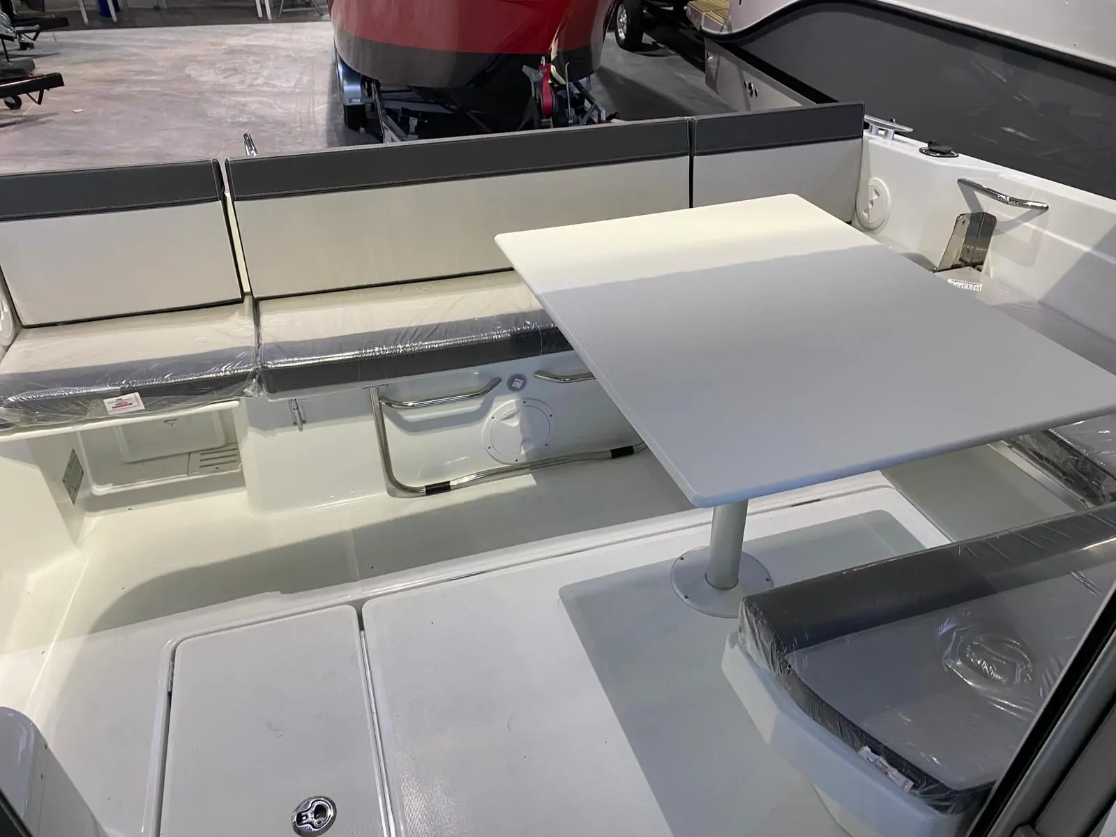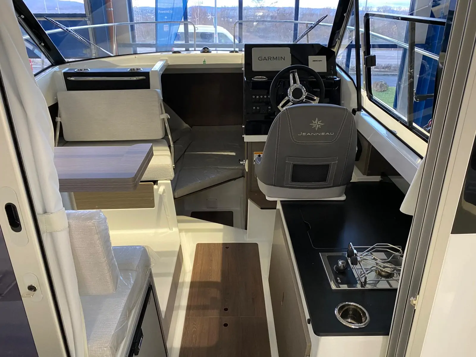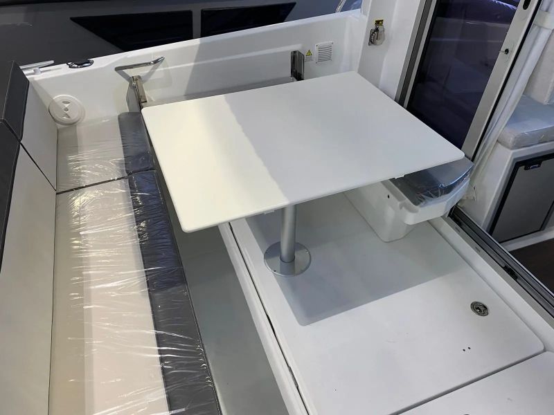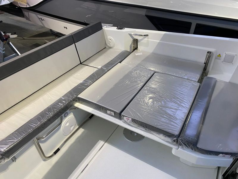 • Trim Level Premiere Package : include tacheti la linia mediana a barcii, trapa panoramica in salonStergator parbriz babord, sistem de spalare parbriz, taperiterie pentru canapele din cockpit, geam culisantBabord, dus in cockpit