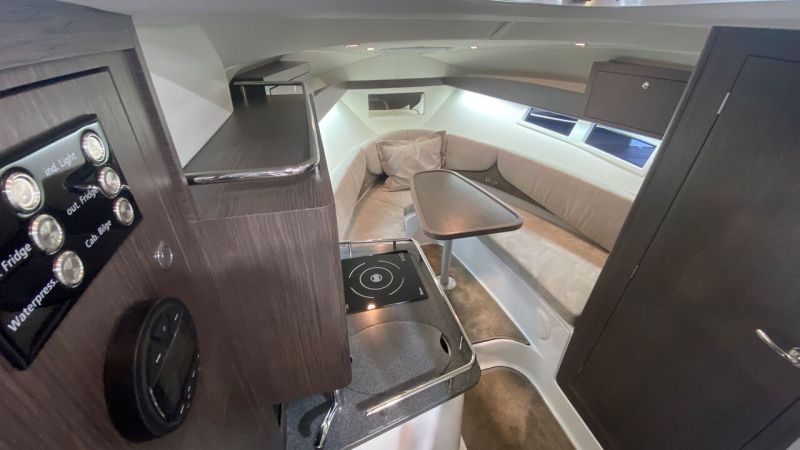 • Sport Yacht Package include : boiler apa calda, sistem de alimentare 220V cu charger baterii si cablu alimentare,isolator galvanic, 5 lumini LED ambientale la nivelul puntii, minibar cockpit cu blat Corian, dus in cockpit pupa, compartimente bagaje in cabina/prova, claxon, aragaz cu placa vitroceramica la bucatarie/ cabina, masa in cabina cu picior reglabil/ transporta canapele in pat dublu